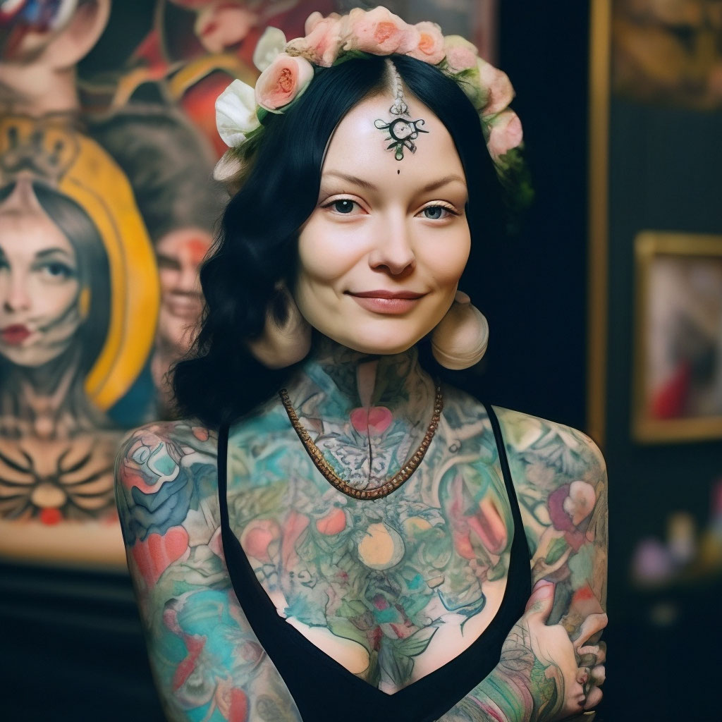 Девушка с татуировкой дракона на теле" - картинка создана в Шедевруме