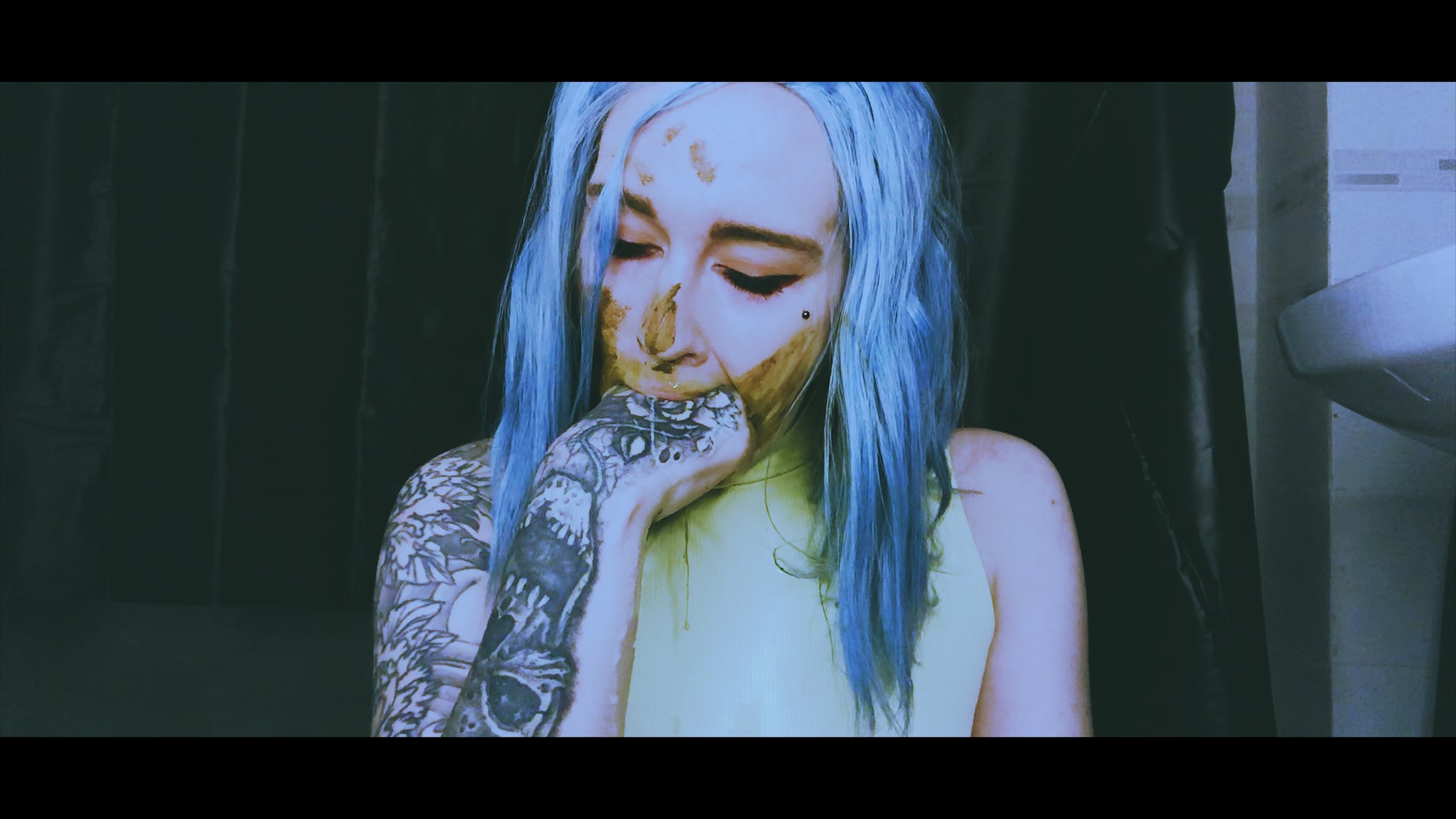 Tattooed girl puts shit on his dick then gives messy blowjob Pervert Tube